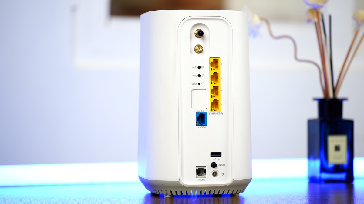 • (1) LAN/WAN 2.5G Port • (4) LAN 1G Port • (1) Phone Port • (1) USB 3.0 Port • (1) Sim Card Slot • (2) Antennas Port |