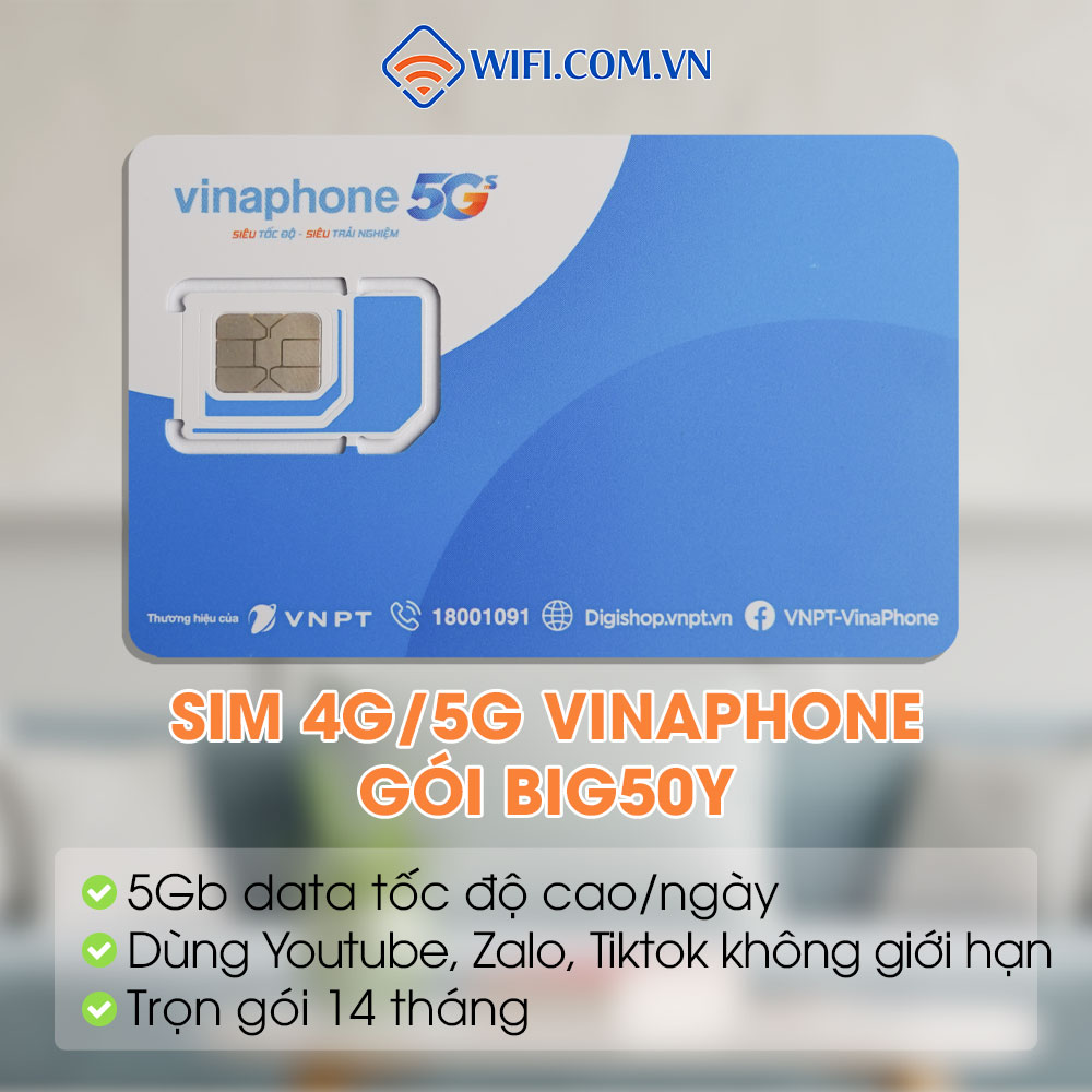 Sim Vinaphone 4G/5G gói BIG50Y trọn gói 14 tháng với giá thành cực rẻ, phù hợp với đại đa số người sử dụng với mức nhu cầu làm việc và giải trí ở mức trung bình. Bạn được ngay các ưu đãi: