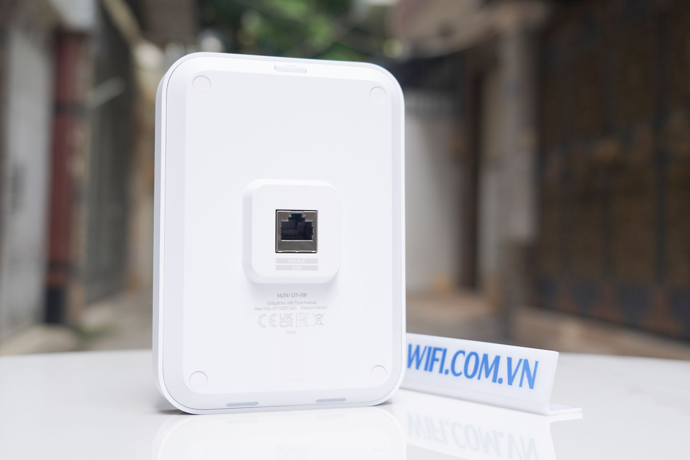 Access Point WiFi 7 UniFi U7 In Wall với uplink 2.5G và 4 luồng dữ liệu. WiFi 7 tốc độ tối đa 4.966Mbps: 2.4GHz tốc độ 688 Mbps & 5GHz tốc độ 4.3 Gbps. Chịu tải lên đến 200+ user, vùng phủ sóng rộng rãi 115m2.